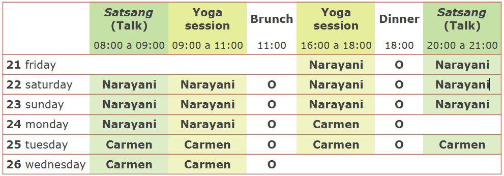 The seminar will be held in two stages. From August 21 to August 24, until brunch time, the sessions will be led by Narayani. From the afternoon of August 24 until the end of the seminar, the sessions will continue with Carmen León.